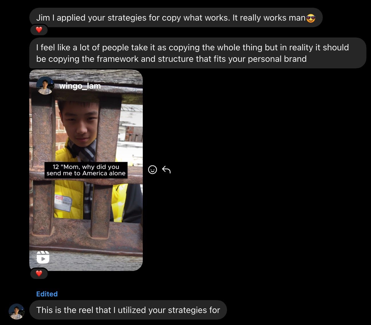 Mino Lee (a short-form content legend) copy and adapted one of my viral formats and both videos got over 2M views: