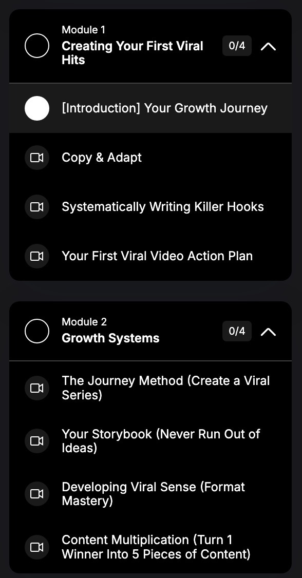 If you want full, in-depth video guides and want to have everything neatly in one place, The Viral Playbook is the complete, tactical reference.