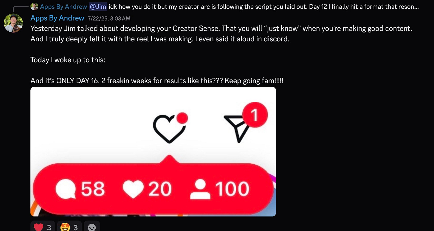 But if you had a recipe book AKA existing viral content, think about how much faster you’d learn compared to someone who doesn’t. Even the most experienced chefs (huge creators like Jun) who create their own dishes still study the recipes of others.